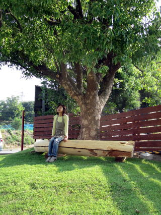 大樹下の天然木ベンチからの眺め